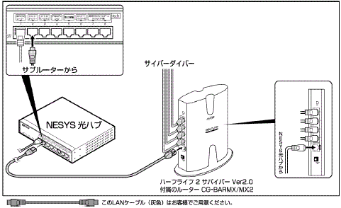 ※サイバーダイバーを含めたNESYSタイトルゲームは、NESYS光ルーターと直接接続せず、必ずNESYS光ハブに接続してください。